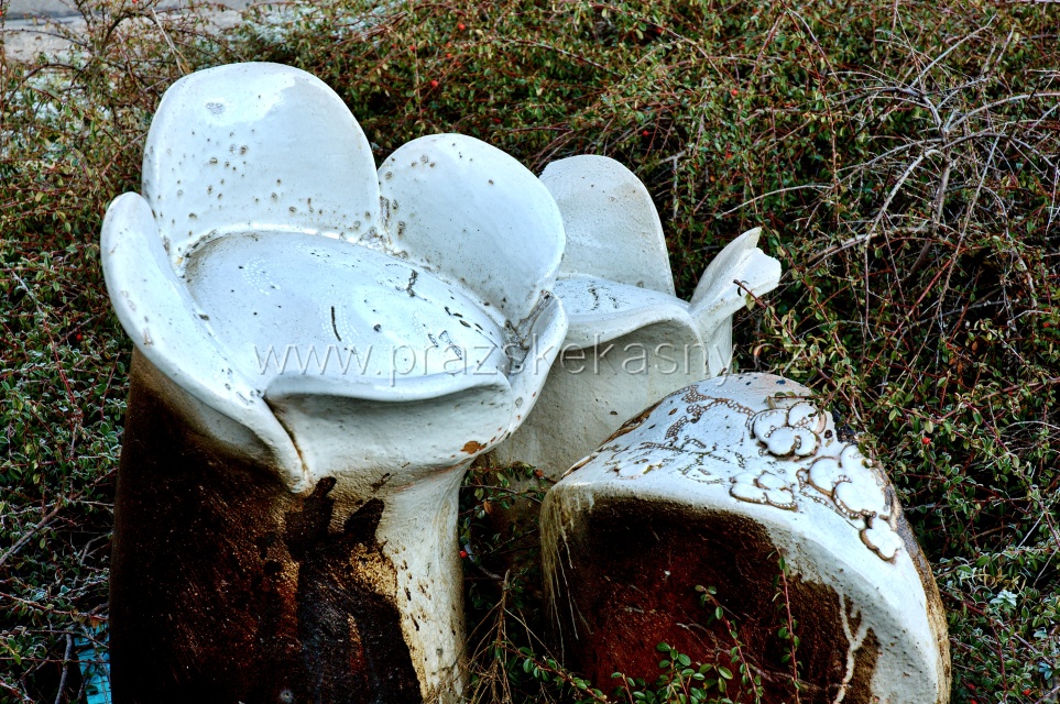 Před budovou polikliniky v Modřanech se nachází pozůstatek někdejší fontány. Čtvercový bazén byl osazen keramickou plastikou ve tvaru květů z mrazuvzdorné kameniny. Autorkou byla výtvarnice Marta Taberyová. Plastika byla v bazénu instalována v roce 1987.