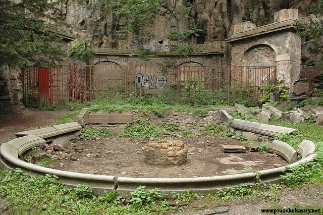 Vila Gröbovka se nachází v horní části dnešních Havlíčkových sadů. Fontánu s Tritonem najdeme o kousek níž, ukrytou v hustém porostu. Nachází se před umělou grottou (jeskyní), kterou navrhl Josef Vorlíček, a v jejím středu je umístěna socha Tritona od Bohuslava Schnircha. Od 2. světové války, kdy byla bombardováním zničena hlavní vstupní brána, zůstal areál sadů volně přístupný i v noci a velmi brzy začal chátrat a byl značně poškozován vandaly. Nejvíc to zřejmě odnesla právě grotta s fontánou. V letech 1973-75 proběhla nákladná rekonstrukce grotty, fontány, jezírka, dětského hřiště a místních částí parku. Bohužel již v roce 1979 byla grotta opět silně poničena, proto byla raději Schnirchova socha z fontány odstraněna a umístěna do depozitáře. Celá fontána i grotta byla v havarijním stavu až do roku 2010, kdy započala rozsáhlá rekonstrukce. Při té příležitosti se zjistilo, že originál sochy Tritona byl v poměrně nedávné době odcizen z "depozitáře", ale přišlo se na to, až když mělo dojít na jeho restaurování. Díky oznámení v médiích se podařilo sochu najít nedaleko Prahy u tvrze Třebotov. Majitel sochu před lety koupil, aniž tušil, že je odcizena. Po dohodě s městskou částí dostal jednu nově vytvořenou kopii, zatímco druhá byla určena pro opravenou fontánu. Kopie sochy se do fontány vrátila až v roce 2014.