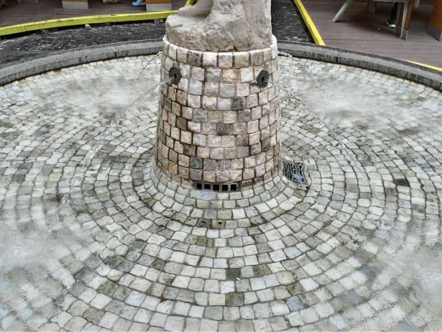 Fontánu uprostřed nádvoří, tvoří kruhová nádrž s mramorovou mozaikou a obrubou z leštěné žuly. Bazén je vydlážděn drobnými kostičkami bílého mramoru. Uprostřed je umístěna plastika dívky od Jana Hány, je rovněž z bílého mramoru.