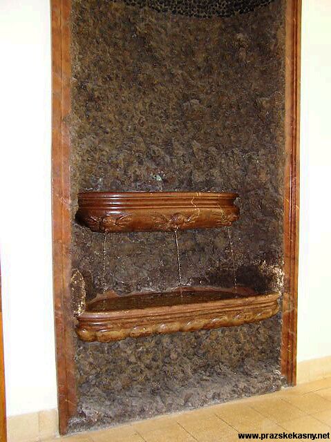 Kašna se nachází na chodbě v prvním patře v nice, která je upravena jako grotta. Dvě mísovité mramorové nádrže jsou umístěny nad sebou, na horní z nich jsou tři chrliče ve tvaru hlaviček andělů. Původně byla kašna zásobována vodou z petřínských svahů, nyní je u ní vybudován recirkulační systém s čerpadlem.
