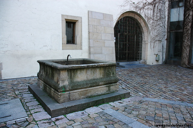 Při novodobých přestavbách, které začal realizovat od roku 1976 obvodní národní výbor Praha 2, našla v nádvoří uplatnění i pěkná kamenná kašna. Na rekonstrukci se významným způsobem podílel architekt Václav Girsa. Pracovníci jeho ateliéru našli podle zachované dokumentace na arkádovém nádvoří dvě studny. Jen jednu se jim však podařilo dohledat a obnovit. Vyzděnou a vyčištěnou studnu doplnili nad zemí dřevěným kruhovým roubením, vykovanou mříž vytvořil kovář Josef Mück. Polorozebranou kašnu odhalili pod vrstvou sutin, umístili ji do čelného místa nádvoří, doplnili chybějící články a uvedli do provozu.