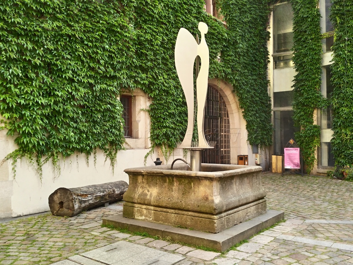 Na novějších fotografiích je kašna dočasně osazena sochou anděla od Pavla Krbálka.