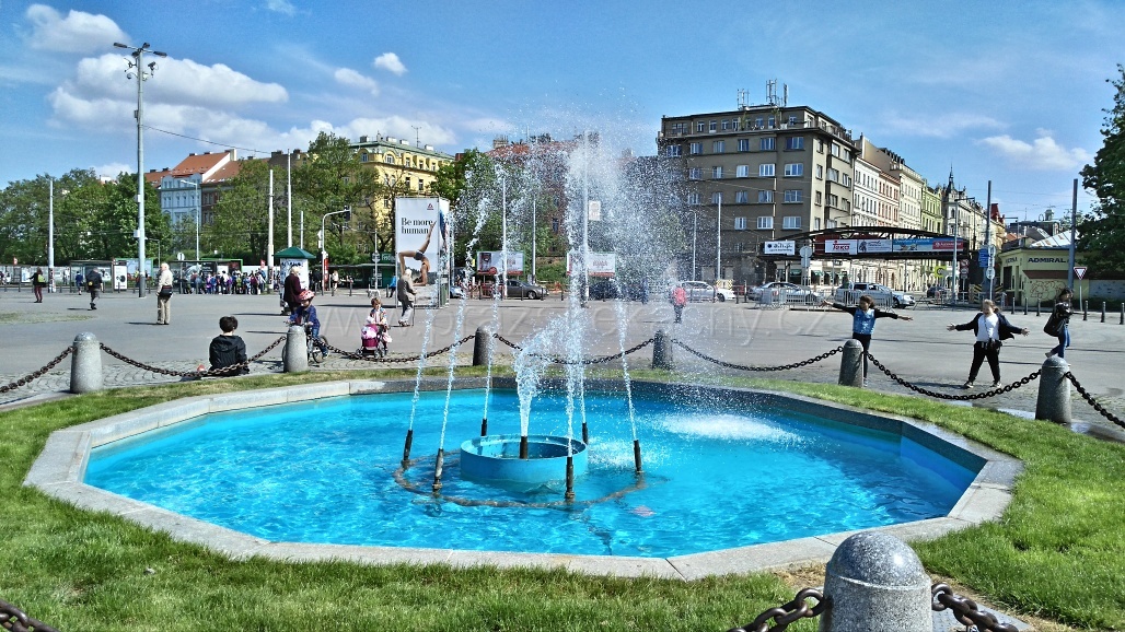 Před vstupní branou do areálu Výstaviště byly v 60. letech vybudovány původně 4 kruhové bazény s fontánami. Na konci 70. let byla krajní fontána nejblíž Stromovce zrušena a na jejím místě byla vztyčena socha Julia Fučíka. Po roce 1989 zde zůstal pouze podstavec. V roce 2005 byly z počátku sezóny fontány v provozu, ale poměrně záhy byly vypnuty a opět zakryty dřevěnými kryty. Od té doby byly nefunkční až do roku 2015, kdy po rekonstrukci byly opět všechny fontány zprovozněny.